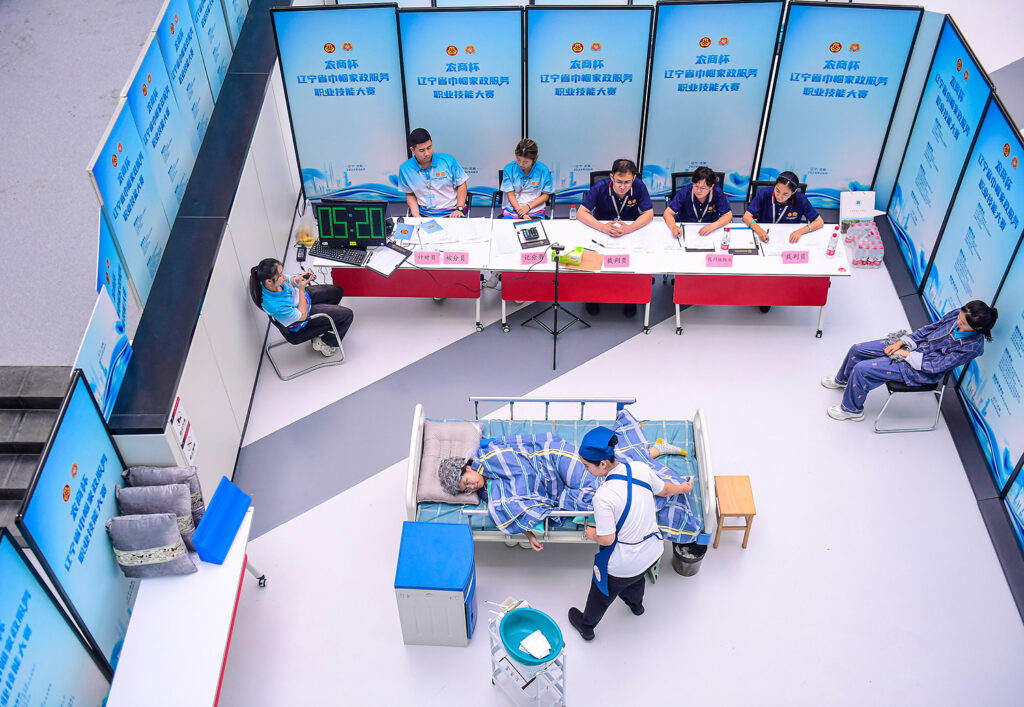 A student participates in a senior care skills competition at Shenyang Polytechnic College, Liaoning province, Aug. 22, 2024. VCG